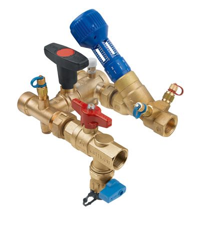 assembly incorporates an isolation valve with integral strainer, a drain point,
